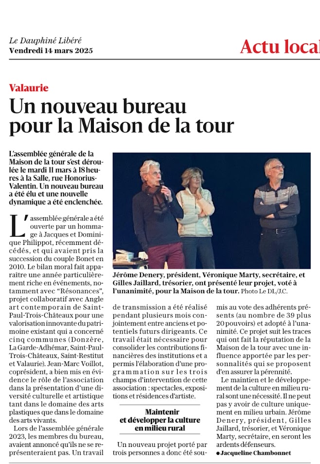 13 mars 2025 - Dauphiné : AGO (nouveau bureau)